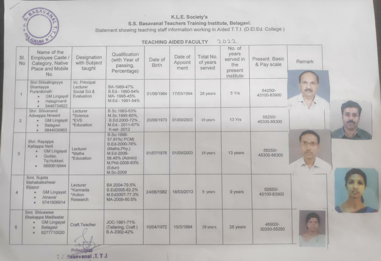 LecturerB.Sc.-I class-1993-63% M.Sc.-I class-1995-60% B.Ed.-I -class-2000-72%,M.Ed-68%- Year 2000 , K.SET Year 2014